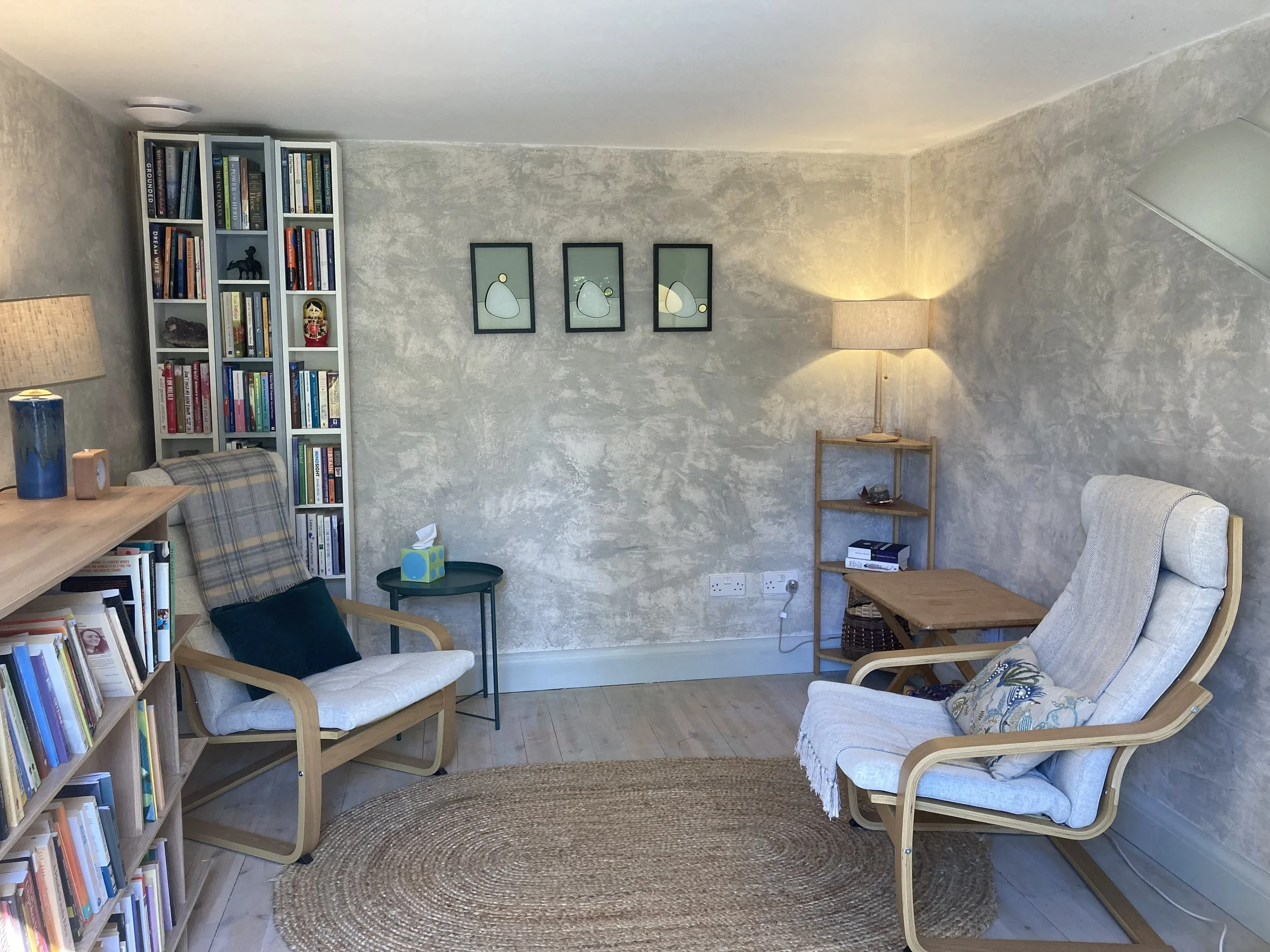 A safe therapeutic space in my therapy room in Frampton on Severn.